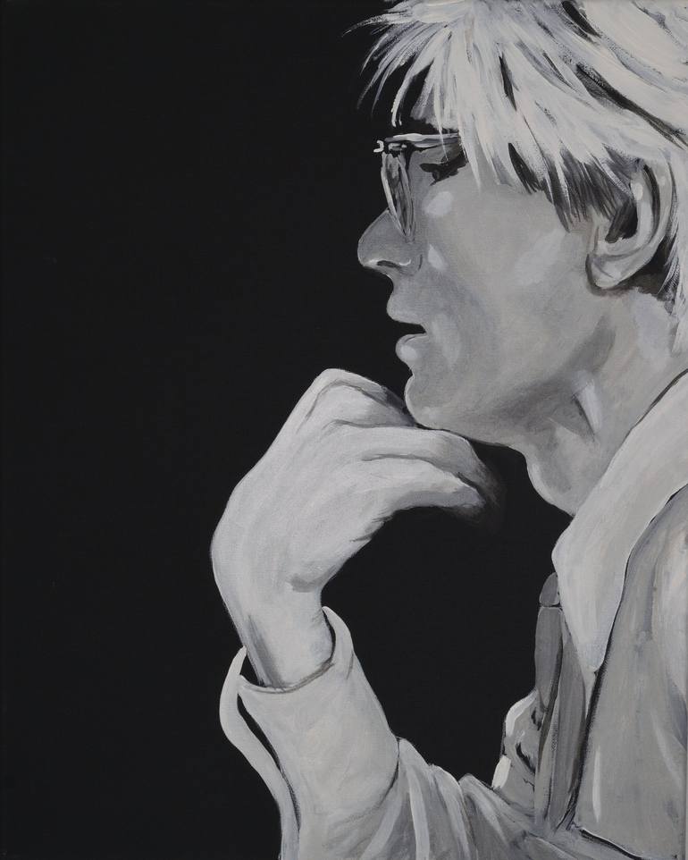 This painting is part of a trio of paintings of Warhol and two of his superstars. Andy Warhol is my biggest artistic inspiration. Acrylic on Black Canvas.