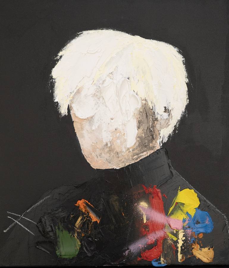 Title of artwork "Andy Warhol" mixed media with spray paint Painted on canvas size F8 (380mm×455mm) unique original Floater wood open back framed Ready to hang