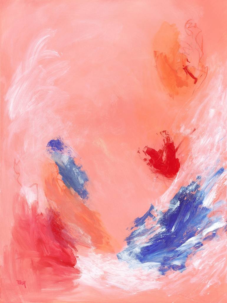 I find inspiration in movement. When I quiet my mind and focus on the canvas, I feel an almost gravitational-like force pulling my brush upward toward the sky. I created ethereal shapes with this upward motion, most identifiable as my vision of angel wings. I hope this work evokes a feeling of no...