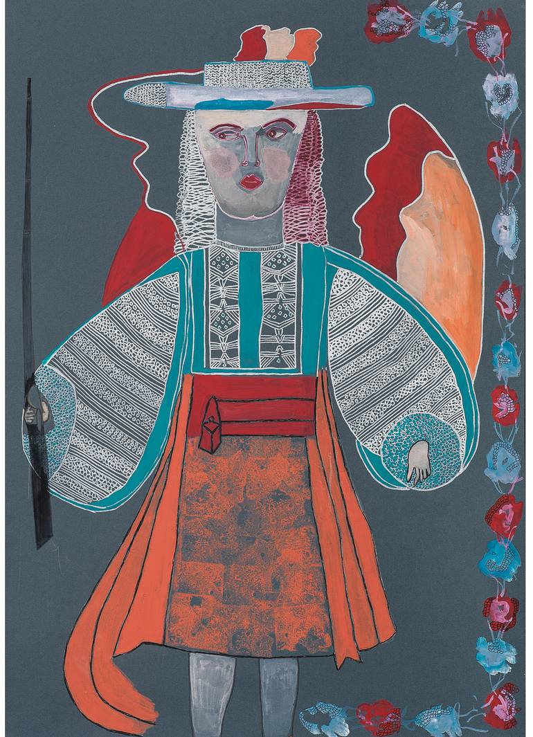 Inspirada en la historia colonial sudamericana. La imagen de estos ángeles la vi en una capilla del norte argentino, en la provincia de Jujuy y es impactante.Busco con esta obra dar a conocer lo que hicieron en esa época en estas latitudes, que se compare,soñar con conocer estos lugares tan bellos y...