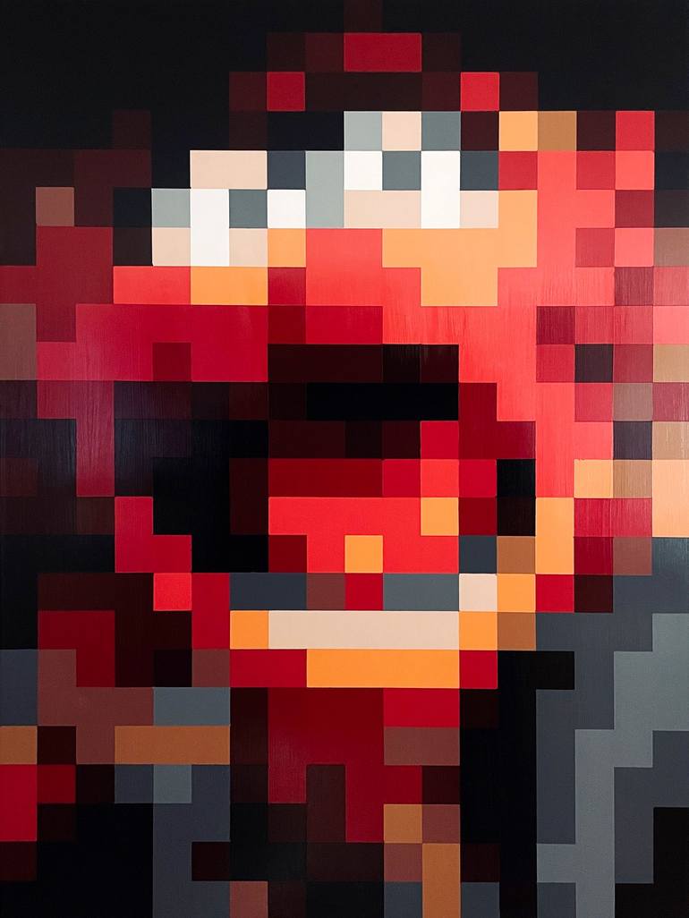 Animal! 36×48 is 516 hand-painted squares (including the sides) using 14 different acrylics on a 36″ x 48″ wood panel. This is not a stencil. Ready to hang, no framing required. Materials: • Wood • Acrylic Paint • Blue Tape • Glitter • Gloss Medium Varnish