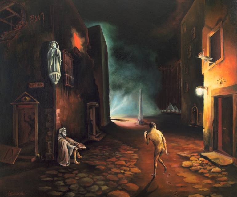 For me, creating art is a way of existence, a way of looking at things and decoding, processing information. I was born in Hungary into a musical family, but by the age of fifteen I found visual communication to be the way to express my observations, deepest thoughts and emotions. By the time I completed BA studies in 2009 I was already slightly disillusioned by the “art world” in general, and realised that I better beat my own path. Being attracted to the vibrant life of London and the beauty of the coastline in the South East of England, I decided to move there to find a word of wisdom, challenge my paradigm and gain worldly experiences of a lifetime. I have spent the next few years finding my own voice as a painter, traveling, researching and compiling a vast amount of literature in all sorts of alternative subjects so I can confidently stand behind what I express in art without sounding like a baby crying in a crib. I developed great respect for stoicism and self studied theories of human psychology whilst continuously experimented with oil painting techniques and also completed commissions to keep in practice. Today, I primarily paint with oil, themes that reflect my views of society and questions about human existence in general. I find oil paint to be the most suitable medium - kindly forgiving, yet to be a powerhouse of expressive voice. I appreciate the balance between slightly rough surface created by thick coat of paint, and the highly detailed fine edges, playful thin coats of paint colouring the surface underneath. Through my paintings I aim to tell stories inspired by both current social and personal life events, my years long research into the occult (hidden) world, history, symbolism and my observations of how the human psyche can be and actually is affected by various traumatic events in a lifetime. The viewer should expect serious topics explored with a hint of dark humour injected at times. Instead of arriving at convictions, I ask questions regarding the original, uncorrupted purpose of life on this plane of existence, leaving behind religious traditions and conventional ideas; and thous attempting to find the “way out of here”.