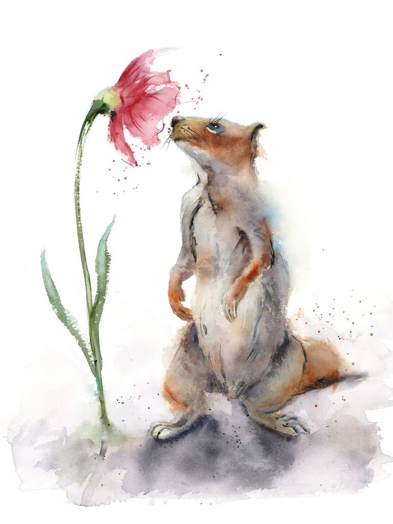Animal Sniffing Flower - Original Watercolor painting. Materials used: watercolor paints and Top branded watercolor paper 300gsm Cold Pressed, 100% cotton