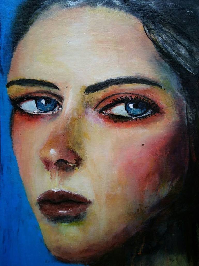 This stunning handmade portrait painting titled "Anna" is a one-of-a-kind piece by artist Sasha Brisac. Measuring 16.5 inches in height and 11.7 inches in width, this medium-sized painting is done with acrylic paint on cardboard material. The painting depicts a beautiful woman with blue eyes, and is...