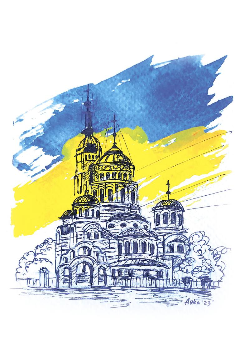 Original Watercolour Painting "Annunciation (Blahovishchensky) Cathedral, Kharkiv, Ukraine", 2023 Series "My native city" The Annunciation (Blahovishchensky) Cathedral in Kharkiv, Ukraine, stands as a magnificent testament to the city's religious and architectural heritage. Its grand design and int...