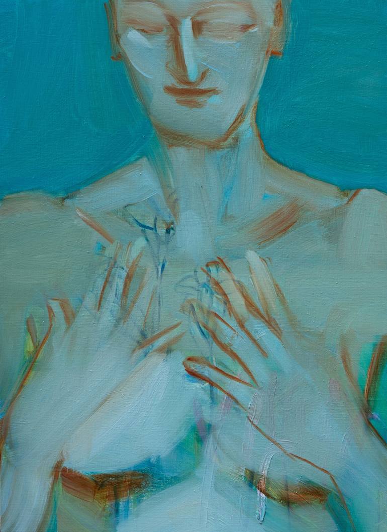 I perceive the world as an ocean where, below its visible surface, layers of complexity can be found in its depths. Painting, for me, is intuitively diving into and through the ocean to discover new dimensions and planes. It is an alchemic activity where the creative decision-making process and my presence as the artist is evident. My painting is an expression of my particular view, involving aspects of reality, nuanced memories and philosophical contemplations. In my work, I aim to describe the essence of life. Experience, observation and study of the human psyche support my work, I empathize with and give voice to my human subjects. In the paintings regarding time and place, I construct surrealistic locations including abstract elements. Like a frame from a film, the painting is a moment arrested in time. During my creative process, I blur the line between reality and the inner experience of my portrayed models, using symbols, surreal locations and abstract elements. I use diverse layers which often lay on each other, melt and synergize. They also have the role of playing with the viewer, exposing and revealing a story shown in the picture.