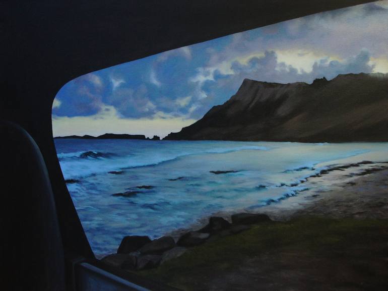 A native New Yorker, Emily Baker studied Studio Art at Middlebury College and has since built an extensive portfolio of watercolors and oil paintings. Emily is often inspired by beauty found in nature; her work in oils captures the subtle details of natural landscapes—a dramatic sunset, low-laying clouds or a solitary tree — while incorporating elements of the modern world. Her more recent pieces are inspired by water. Growing up spending half the time at her family’s home in Shelter Island, she has always been drawn to the sea. These paintings focus on water’s movement and include both vast seascapes as well as zoomed in, textural pieces. Emily pays particular attention to the framing of her images, so that the subject matter becomes less important than the viewer’s angle and the light in which it is composed. “When I’m choosing an image to paint, I don’t strive for photo realism,” she explains. “I’m more interested in capturing the feeling that inspired me in the first place, whether it’s the darkness of an oncoming storm or just the possibility of the open road.” As a result, her paintings feel at once intimate and vast, and often explore the concepts of discovery and contemplation—how a person can be so affected by their surroundings that they are forced to stop and absorb the moment. She is regularly commissioned by private collectors and her work has been shown in galleries in California, Florida, Virginia, Connecticut, Vermont, New Jersey, New York and Eastern Long Island. She lives and works in Cascais, Portugal.