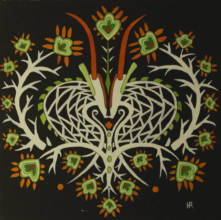 The painting is a part of the cycle "Nio far" ("We are together" in wolof, the national language of Senegal), exhibited as an accompanying event of the Polish-Senegalese traditional music concert on the Goree Island in 2014. The image contains mixed popular Polish and Senegalese folk motifs.
