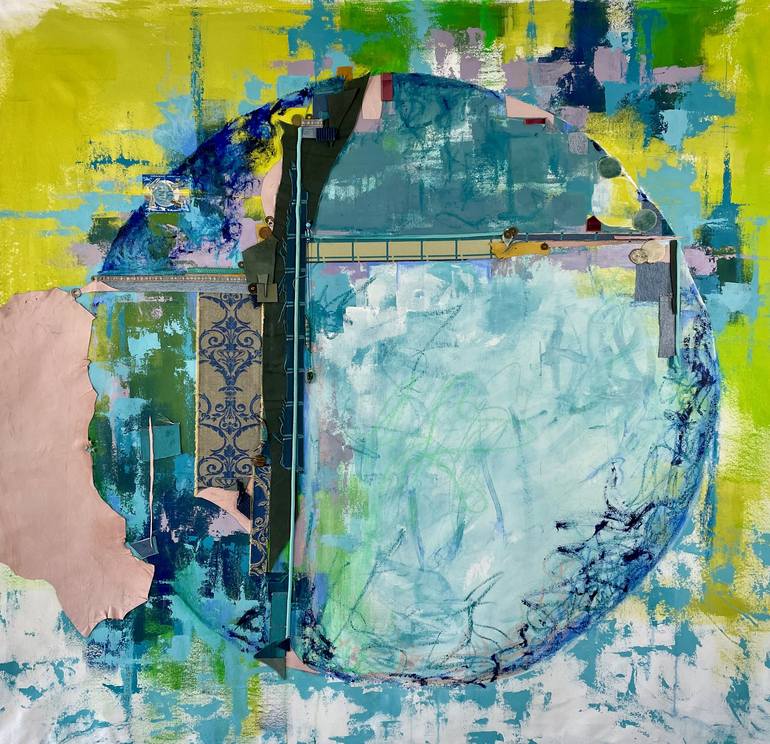 I find inspiration in nature, art, design and life experiences. My art is an abstracted expression of space, form and movement extending beyond present time and place. I work to express the yin and yang of life, ranging from the tough to the sublime, from turmoil to tranquility. My color palette leans toward blues, greens, and other cool tones with splashes of warm, vibrant hues. I tend to paint thinly in some areas, increasing thickness for contrast and emphasis. My primary medium is acrylic. I often integrate fabric, paper, glass, beads and other materials for texture and complexity of expression.