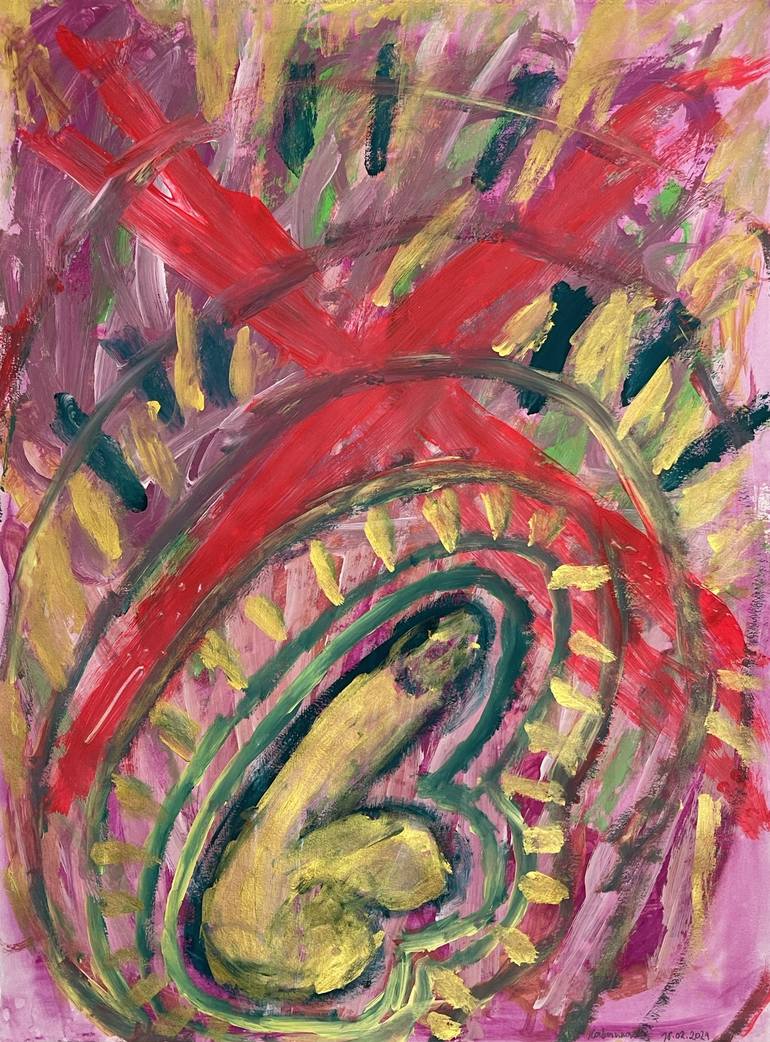 Original contemporary art. This work is One-of-a-kind. Hand painted. 22 " width x 30" height x 0.1" depth. MATERIALS: Gouache and acrylic on paper. Every painting contains only top quality materials. This is part of a series of works. But painting can also exist as an independent work. The pain...