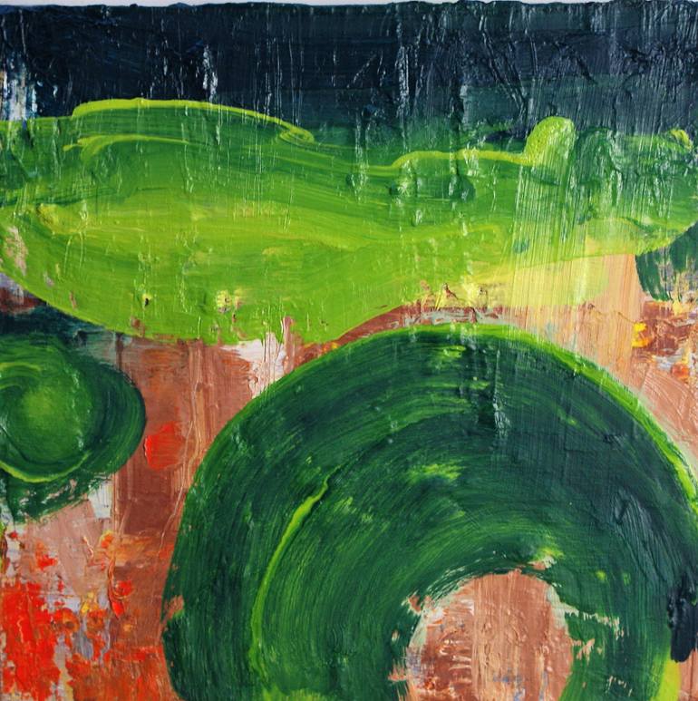 This fresh, lively, colourful abstraction is taken from a series of sketches done whilst driving through the English landscape on holiday. I wanted to re-imagine the English landscape in the way the eyes capture land in a moving car. It is also an attempt to create the feeling, sensation and memory ...