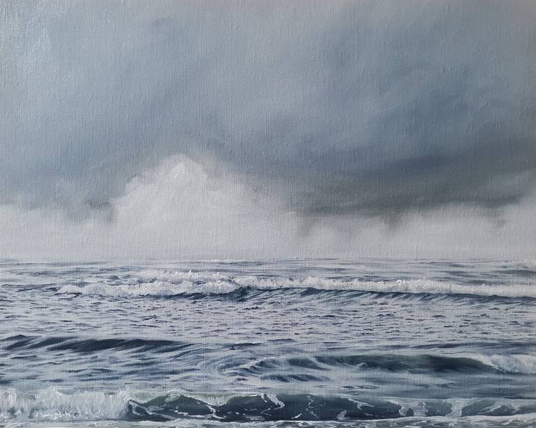 My work focuses on storms and the light we find within them. I paint intimate and real scenes that invite the viewer to look closer and embrace the darkness. The darkness is something that most shy away from but for me there is nothing more comforting than a storm creating chaos- after all there can be no darkness without light. My work has evolved from painting the sea as a subject to painting it as a person; historically boats were named after women and it felt fitting for me to adopt the same practice. Each painting is personified and named after women, whether they’re a historical figure or simply a strong woman who altered my life in some way. My paintings include stormy skies and rocky shore lines. I leave the edges unfinished in order to create the illusion of hazy memories. Within each I try to portray the subtle lighting, tones and mood of each seascape creating powerful emotions for the viewer.