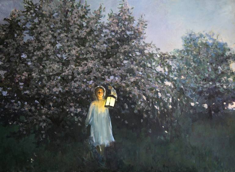 The idea of the canvas is inspired by childhood memories. The picture conveys a childlike feeling of awe in anticipation of something magical and mysterious. Well-known during a day, at night apple orchard transforming to incomprehensible universe. These rapturous emotions at the same time echo...
