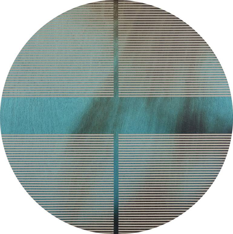 "Aqua blue pill" is one of the 30 small tondo paintings on wood comprising the Dopamine mosaic. This 30-piece ensemble was created between January and April 2024 by the artist using a mix of techniques including airbrush, stencilling and pyrography. This multilayered piece fuses the tactile rawness ...