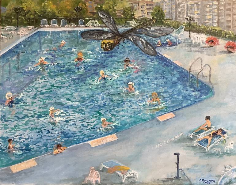 Aqua-Fit in Kelowna CityScape Original Painting in Oil 20x16" Artwork by Antonina Dunaeva -Come4ARTAntonina Good for living or dining rooms decoration. Original painting in Oil by brushes on an an artist canvas with high quality paints. Ready to hang. All sides are covered. Oil painting wall art m...