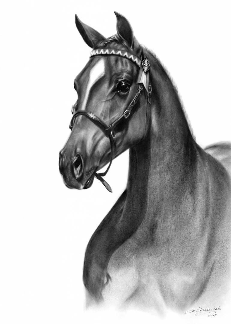 Oil painting on paper of beautiful arabian horse. Dry brush technique