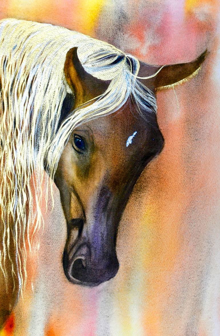 What a gorgeous stallion. Wonderfully photographed by Tariq Dajani (who has given me copyright permission to use image). I've painted this image is a loose suggestive style with interesting colours such as amethyst on the nose.