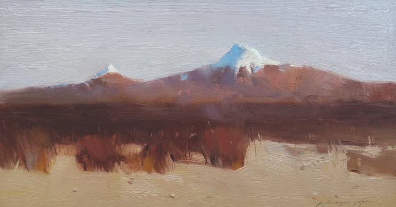 Artist: Vahe Yeremyan Work: Original Oil Painting, Handmade Artwork, One of a Kind Medium: Oil on Canvas Year: 2022 Style: Impressionism, Subject: Ararat Size: 12.5" x 24" x 0.8'' inch, 32x61x2 cm, Unframed, Stretched on Wooden Bar, Gallery Wrapped, Ready to Hang. Yeremyan is an American Arm...
