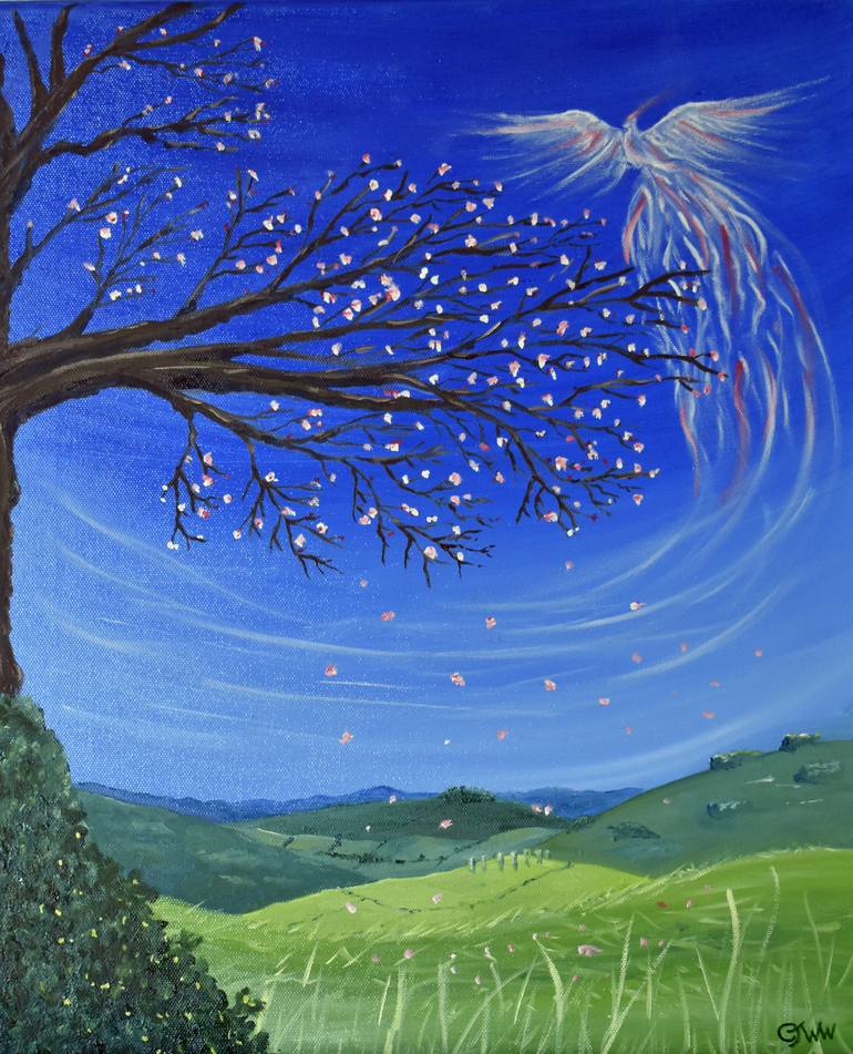 I have painted this while in lockdown in the UK. I wanted to create something as a symbol of hope to all that we will get through this strange and difficult time with patience so I depicted an image of spring with a Phoenix arising, a symbol throughout the ages that has represented rebirth and rene...