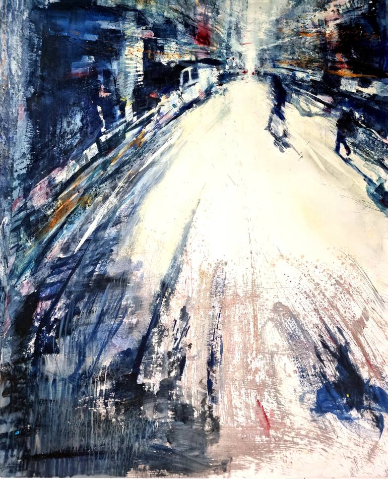 David Antonides Born in Whitehorse, Yukon in 1958, David Antonides has studied in Europe, Canada and at the Art Students League of New York. His work is focused on water-based pigments - but in an approach that creates a weight and drama not normally associated with this typically transparent and fragile medium. Although he paints some studies in oil, the final works are completed in water media. The course of Davids work has lead to a focus on large format cityscapes and urban behavior. Water for me is a medium that intermediates the tangible with emotion and spirit. It flows between my intention and its own laws of nature and serendipity its a collaboration of sorts.Watercolour can make a strong statement and be monumental. It can have weight and gravity. I am searching to create a weight and drama not normally associated with this typically transparent and fragile medium. I want explore the contrast between the subtlety of complex color transitions and the strength of dense, robust marks. I believe that there is spirit and nature in the city. We can feel it, although we may not always know where to see it. Shapes and movement can express the essential experience we all innately attach to our familiar urban environment. I want to move away from rendering these environments, struggling not to describe them but to push the shapes far enough from the literal that -with the help of gallons of water - find what flows between objects, viewer and experience.
