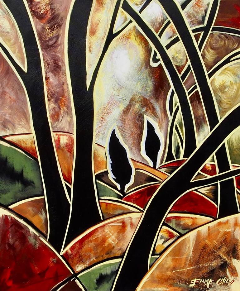 Highly unusual totally unique Art Deco inspired landscape produced using selected Art Deco complimentary colours. Striking collectible piece. Original signed acrylic on canvas, certificate of authenticity ready to hang.