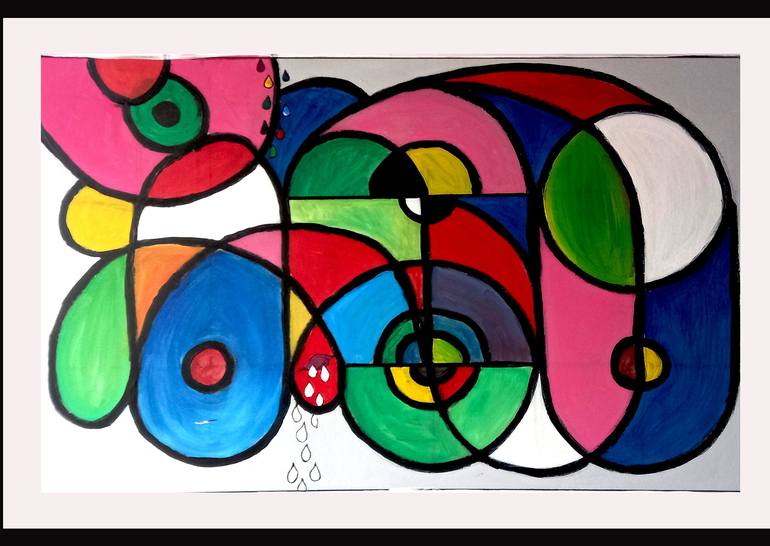 This fun and colorful piece explores colors, shapes and textures in many ways to mix a fusion of characteristics traits from Miró and Botero. It also explores limits in shaping colors transmitting a state in a ´fluffy´ area spacing. This vibrant piece counteracts with sadness in the form of an el...