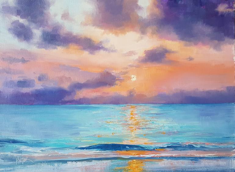 This calming sunset allows the viewer to feel the slow rolling waves breaking in front of their eyes. The cloud formation is just right to bring out a sky that is full of subtle reds, violets, oranges and yellows. The sun has just a little bit of life before it calls this day "over". Those reflectio...