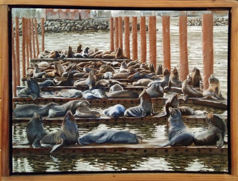 Sea lions conduct senatorial proceedings on Astoria, Oregon shipping dock. Native species adapt to altered ecosystems in the wake of humanity. When animals find safety in man-made structures, dependency builds as predation lags. Wildlife forages garbage for scraps of fast food leftovers, while hab...