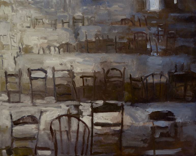 This painting was done completely from imagination and memory with oil paint on canvas. I like to pain thickly and there is a lot of paint and brushwork to be enjoyed with this piece. I often begin a painting by applying random shapes of color and letting the image emerge intuitively. There is alway...