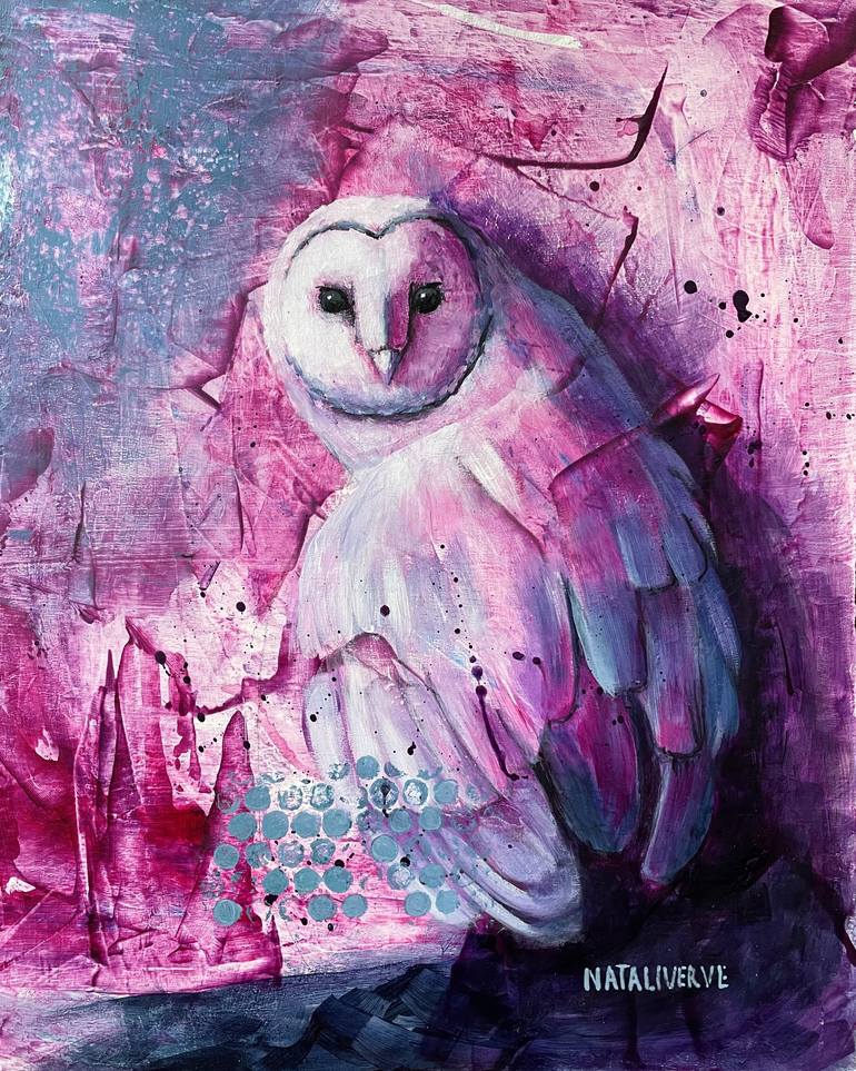Original acrylic painting on MDF ''At unawares'' 16'' x 20'' The abstract barn owl.
