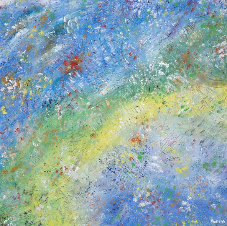 My paintings are colorful, expressive, impulsive, radiant, dynamic, free intuitive, joyful creations. I always work truly right out of my heart and soul and the lights and colors I am feeling inside. So every piece is a vibrant intense aesthetically pleasing experience which brings radiant lightness...