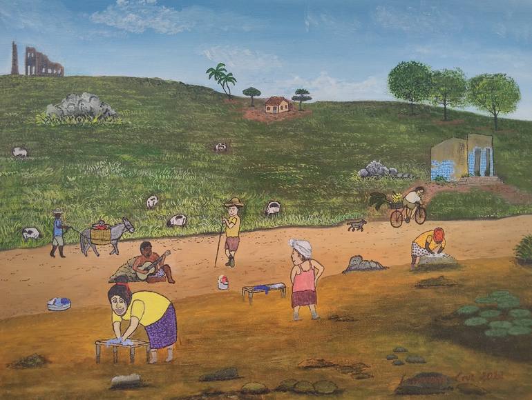 Emerson Cruz de Santana is from the city of Santa Rita in Paraíba. He is a self-taught artist and creates his work with peculiar features in a Naif style. His artistic work can be described as scenes from everyday life told in many colors, in the form of stories. His approach conveys a multicultural aesthetic and respect for differences, which reflects his interest in the diversity of knowledge and humanism. Each work is conceived as an existential moment and part of a greater narrative by the artist, who calls himself a storyteller.