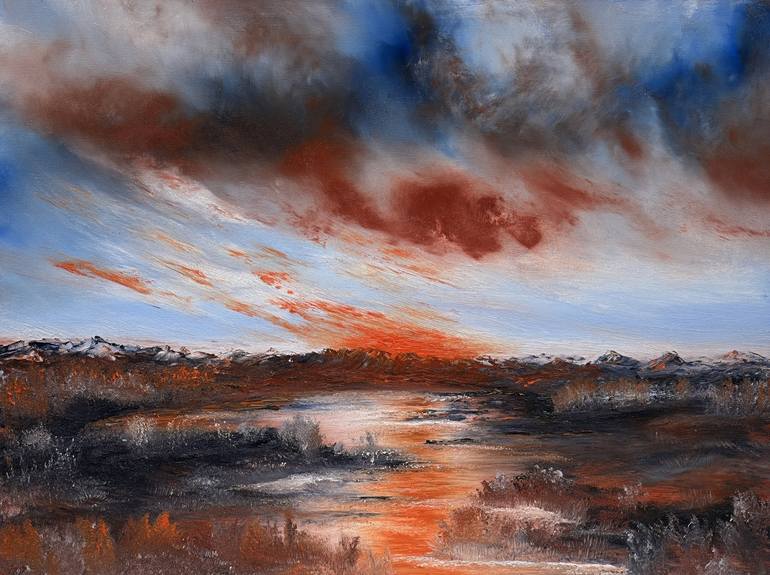 Auburn Sunset - Original Painting I would like to present the hand painted oil on canvas. This painting comes signed on the front and the back. This piece was created with oil paint on artistic canvas using my technique with a palette knife and black hog brush. Auburn Sunset is an interpretation...