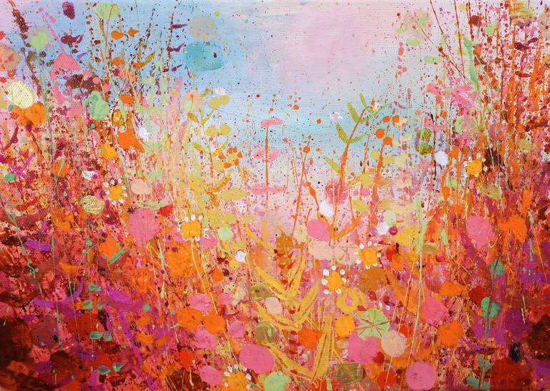 Sandy sells both portfolio work and creates substantial commissions for both private and corporate clients. Her work has also been published as fine art prints. Artists statement: I live and work in Kent, in the South-East of England. I work with landscapes, from which I draw my inspiration. The play of light and shadow, and the in-the-moment experience of absorbing the world around me inform my work. I am also drawn by my memories of a childhood spent outside, the visual impact and pleasure of that still resonates with me. I love colour and texture and in my work am always attempting to use these elements to create a harmonious balance. I enjoy working in an experimental way with different materials, I frequently throw paint at my canvas, and work with the canvas on the floor, dripping paint onto it. The spontaneity that gives me very valuable.
