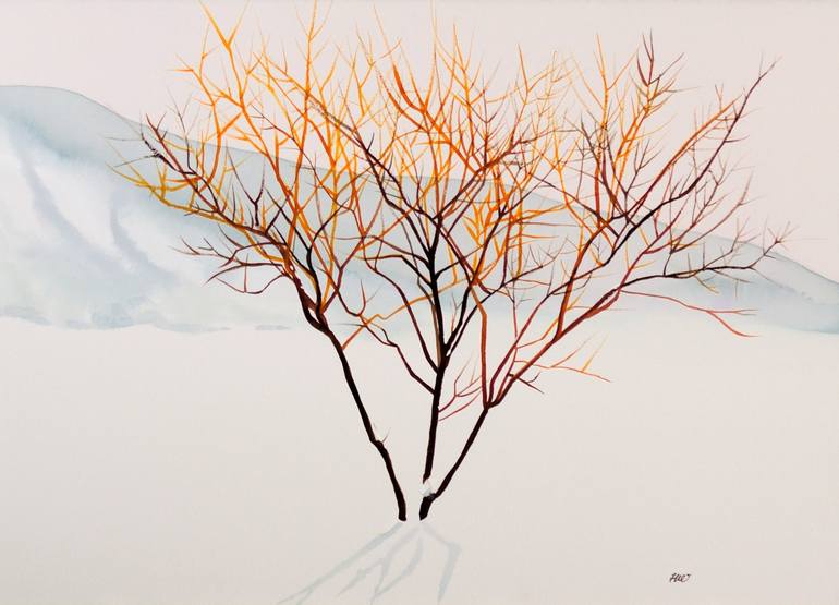 This tree is in my garden and I look at it everyday. In this piece I emphasized the white snow outside of living room when I opened in the morning.