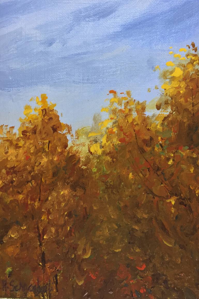 Amazing autumn colors of the trees by the Lake of Geneva (Switzerland) this fall. On acid-free paper specially designed for oil painting. Not framed. A space is left around the painting. Total size: approx. 12 W x 17 H cm. Size of painting: approx. 10.5 W x 15 H cm. Title, certification stamp and ...