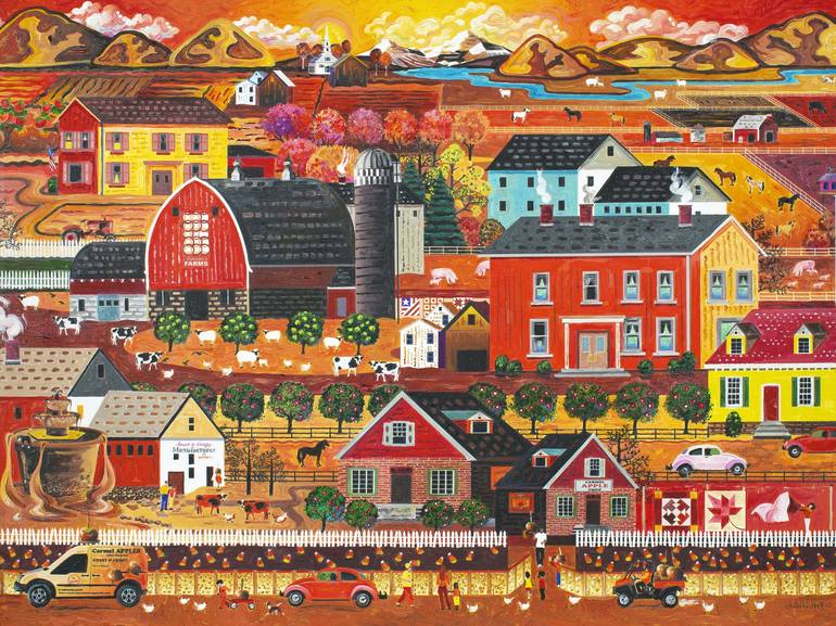 In this painting, I sought to encapsulate the vibrant essence of rural life through a tapestry of autumn colors and detailed folk motifs. Each brushstroke embodies the vitality and bustling activities of the countryside. The artwork is intended to evoke feelings of warmth and nostalgia, offering a r...