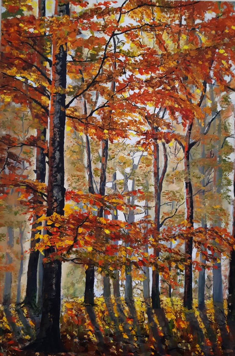 Autumn Forest Painting. This original painting is painted with oil on canvas with palette knife in the technique of 3d. Edges are painted. Impressionism art Autumn forest. Size: 39"×28" inches (100×70cm).If you want to order this painting in a diferent size, please contact me via curator. I w...