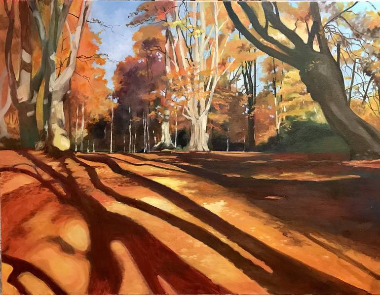 I am a full-time artist and I paint in oils and acrylics on canvas. I live opposite Epping Forest and find the forest a constant inspiration for my art. Recently I have been exploring the effects of the light within the forest; the shadows playing upon the forest floor and the shadows cast by the leaves on the tree trunks. I paint and sketch in the forest and also use my own photographs to aid me in my compositions. Living, as I do, on the edge of Epping Forest; when I turn away from the woodland, I find myself facing London and a very urban landscape. The Town-scape has inspired me to paint figures in this, contrasting, environment. I have been concentrating on people who seem lost in their own private world while waiting at bus stops, for trains or for friends to join them. People who are lost in thought as the city moves, at speed, around them. My art training was in London and I have exhibited widely. Recent solo exhibitions include 'Stone Space Gallery, London E11, 'The Artefact Gallery' London W1, 'The View Gallery' London E4, '54 The Gallery' London W1, 'Gallery 27 Cork Street' London W1.