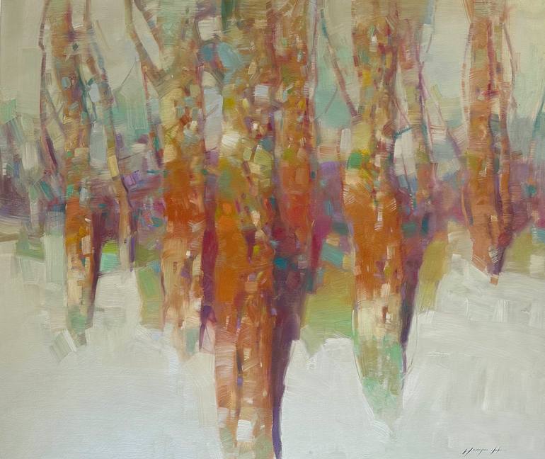 Artist: Vahe Yeremyan Work: Original Oil Painting, Handmade Artwork, One of a Kind Medium: Oil on Canvas Year: 2022 Style: Impressionism, Subject: Autumn Grove, Size: 40" x 48" x 1'' inch, 102x122x3 cm, Unframed, Stretched on Wooden Bar, Gallery Wrapped, Ready to Hang. Yeremyan is an Armenia...