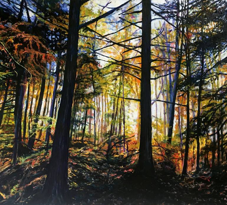 Inspired by the rural land in which I live, I captured the late day light coming through the autumn forest. My work is inspired by my close connection to the land and the environment.