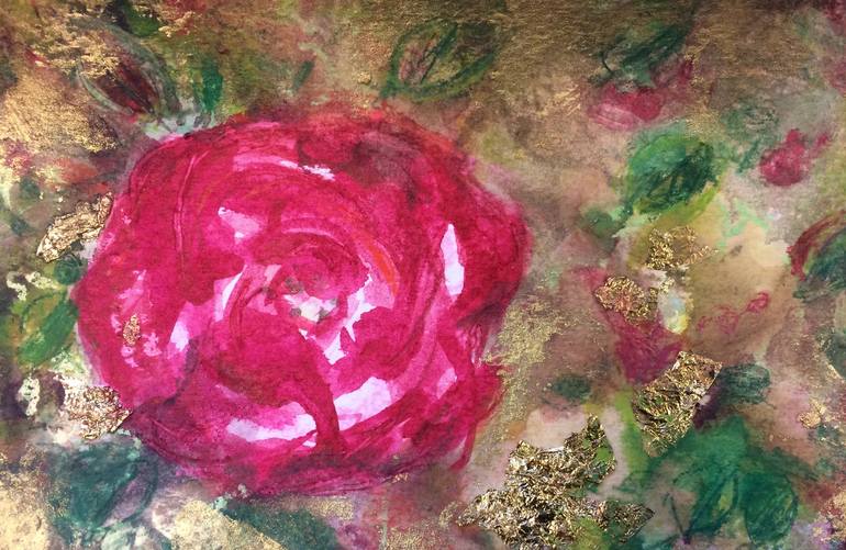 Autumn Rose D Or I is an original watercolor tempera and gold blade painting painted and inspired by roses , Rosegardens and Nature.