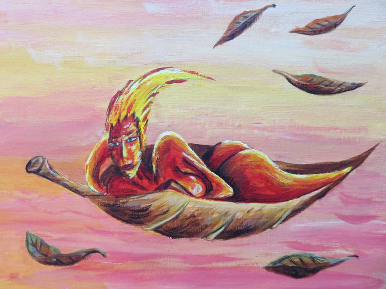 Autumn Season flying on a dead leaf Autumn or fall or Halloween Season is one of the four seasons. Saison d'Automne flottant dans le ciel sur une feuille morte