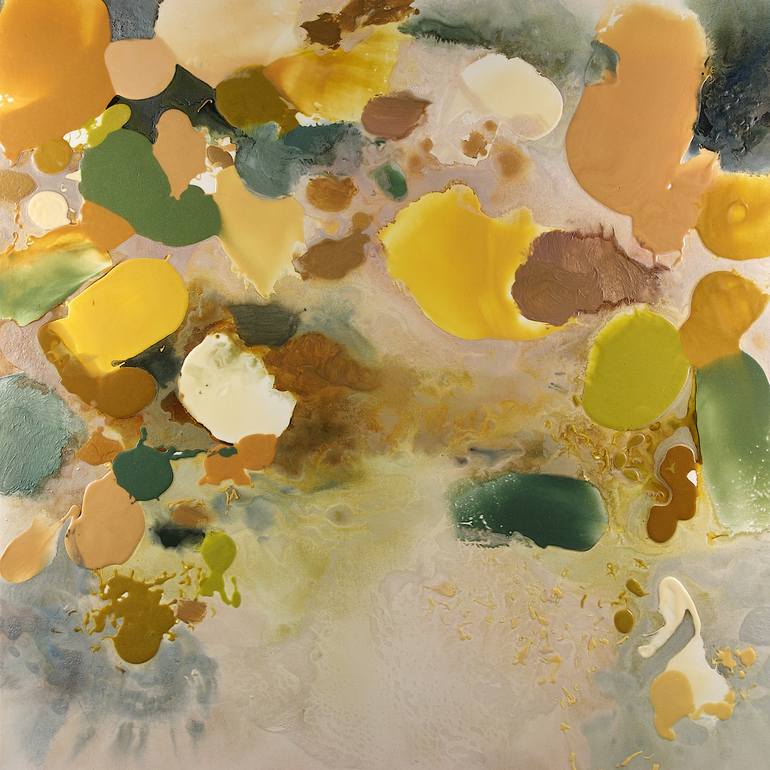 High quality Golden Acrylic paints and texture mediums, heavyweight (15 oz) cotton duck canvas, bespoke box-profile stretcher bars, isolation-varnished with final semi-gloss, removable, solvent acrylic varnish. Unframed.
