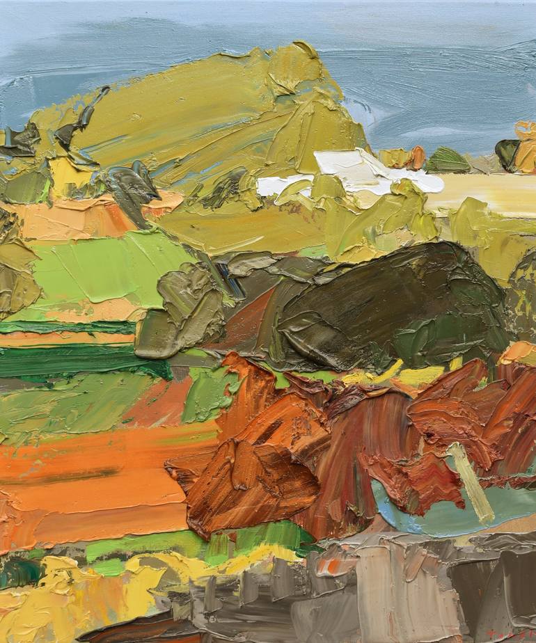 The painting represents views of autumn vineyards as observed from the car when driving through the Clare Valley. I combine the moving views to make an abstract design. This is the area I live in and it is scenery that is familiar and very dear to me. The artwork is made with highest quality artist...