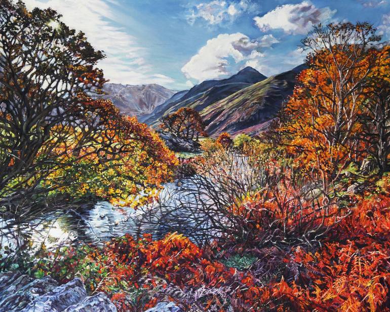 This painting shows the last Autumn leaves before the winter in the beautiful Nant Ffrancon valley, Snowdonia, North Wales. A lot of my work is inspired by the beautiful area in which I live.