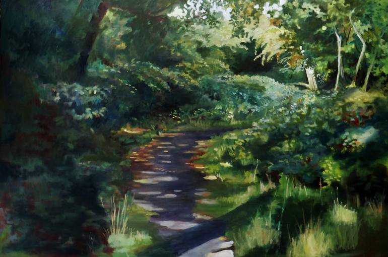 I am a full-time artist and I paint in oils and acrylics on canvas. I live opposite Epping Forest and find the forest a constant inspiration for my art. Recently I have been exploring the effects of the light within the forest; the shadows playing upon the forest floor and the shadows cast by the leaves on the tree trunks. I paint and sketch in the forest and also use my own photographs to aid me in my compositions. Living, as I do, on the edge of Epping Forest; when I turn away from the woodland, I find myself facing London and a very urban landscape. The Town-scape has inspired me to paint figures in this, contrasting, environment. I have been concentrating on people who seem lost in their own private world while waiting at bus stops, for trains or for friends to join them. People who are lost in thought as the city moves, at speed, around them. My art training was in London and I have exhibited widely. Recent solo exhibitions include 'Stone Space Gallery, London E11, 'The Artefact Gallery' London W1, 'The View Gallery' London E4, '54 The Gallery' London W1, 'Gallery 27 Cork Street' London W1.