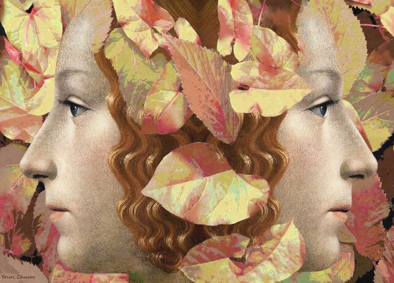 Symmetrical portrait of a girl in the color of the bush leaves. 1st Place,The 2025 American Art Awards,Skyforest,USA. September-October 2023,Honorable Mention Award,8th OPEN International Juried Art Competition,Teravana art gallery,Los Angeles,USA.Virtual Exhibition of Youri Chasov.18.4.-18.5.2021.A...