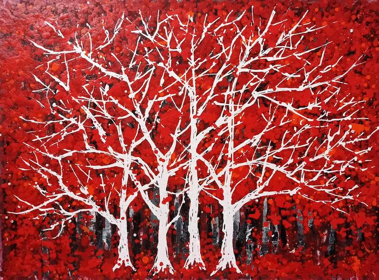 Natural landscape paintings always make the room more open and intimate, giving viewers a feeling of relaxation and peace. A beautiful autumn forest landscape painting is an artistic highlight for your sitting space, bringing a luxurious space to life... The painting uses a small color technique con...