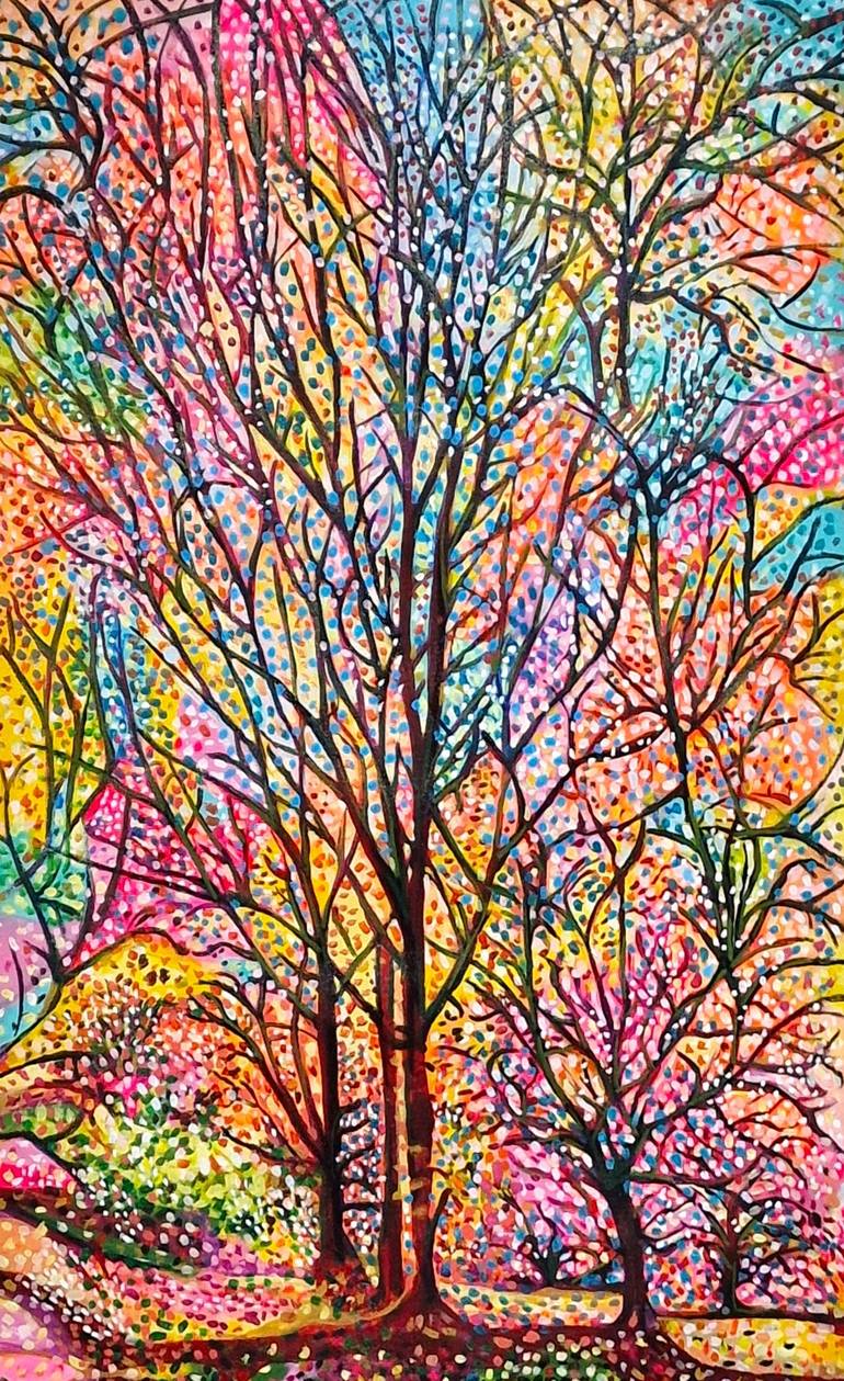 Acrylic on canvas This work was created on canvas and is shipped rolled in a tube. Simply take it to your local framer to have it stretched/mounted. This artwork does not have to be framed. The edges are colored as a continuation of the picture. Here the artwork is shown with edges. This artwork...